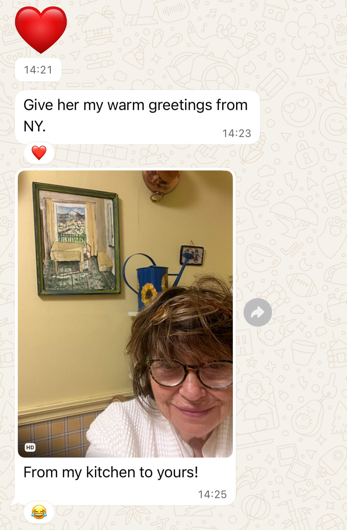 My mother responds with a message and a photo which I show to Zeinab.