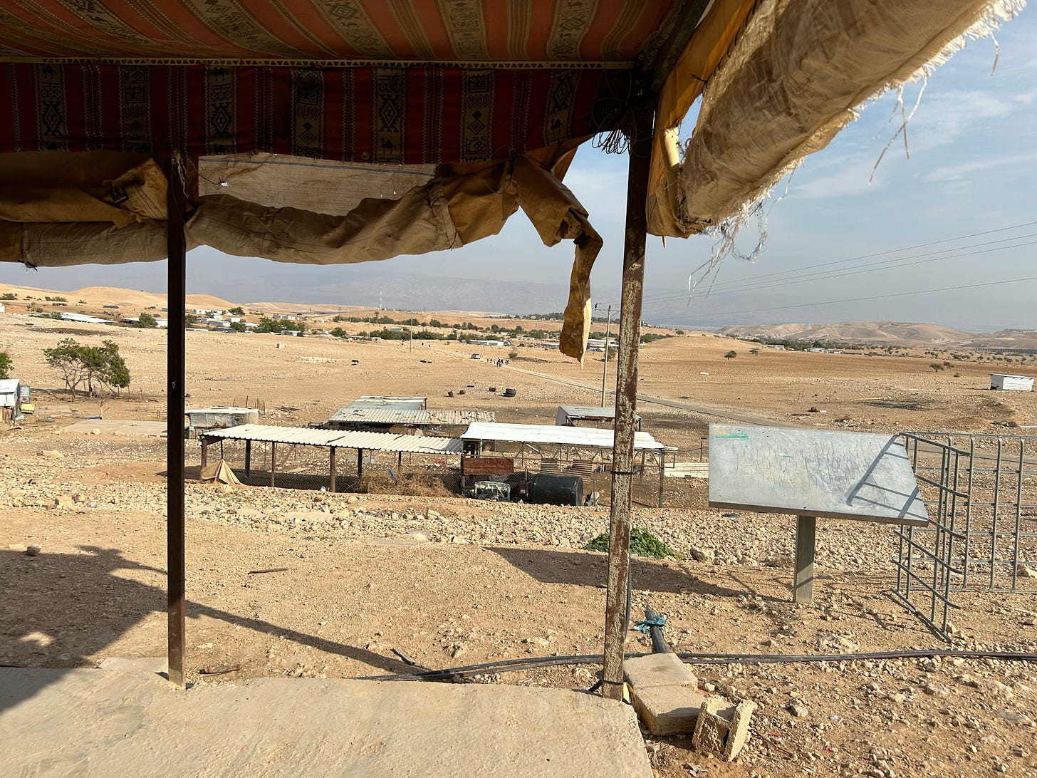 Ada is one of the core volunteer leaders of Mistaclim LaKibush Ba’Aynayim (“Looking the Occupation in the Eye”), one of a handful of protective presence groups operating throughout the West Bank. Their primary focus over the last couple of years has been on supporting the village of Ras Ein al-Auja (“Ras”), a Bedouin herding community of about 550 women, men, and children living in the dark shadow of a Jewish terrorist encampment.